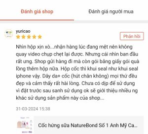 Biết ơn mom Yuri Cao đã đón nhận và chia sẻ trải nghiệm của mình khi nhận cốc hứng sữa Naturebond từ Milena.